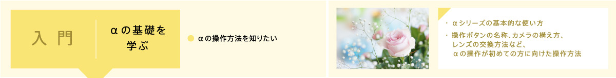 | 知識を学ぶ | αの使い方 | デジタル一眼カメラαの基本の使い方、操作の知識 |